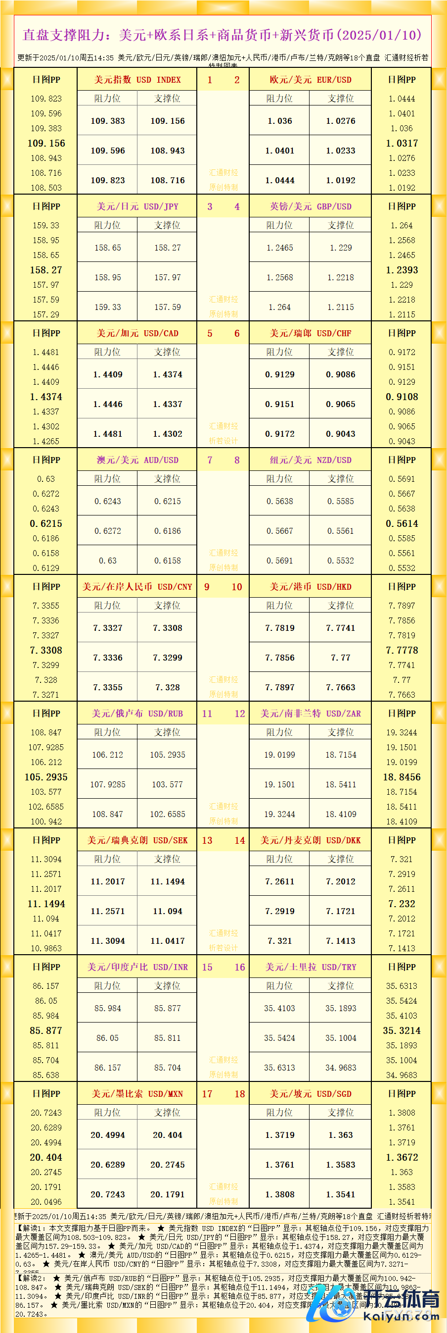 汇通财经APP讯——一张图看直盘撑捏阻力:好意思元+欧系日系+商品货币+新兴货币,更新于2025/01/10周五14:35,具体好意思元/欧元/日元/英镑/瑞郎/澳纽加元+东谈主民币/港币/卢布/兰特/克朗等18个直盘,更多详见汇通财经析若特制图表中的现实。
