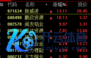 有色、油气、煤炭等周期股走高,准油股份、鹏欣资源、闽发铝业、安源煤业涨停。