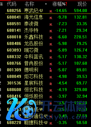 着落方面,芯片股下挫,寒武纪大跌超14%。