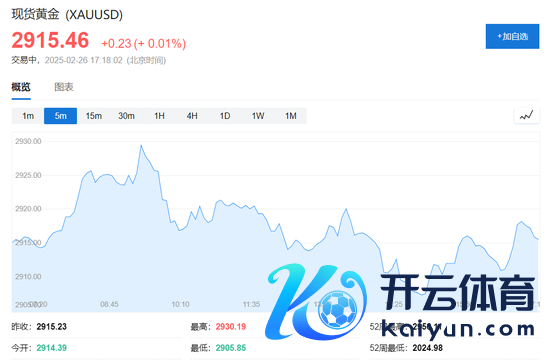 现货黄金小幅走高,现报2915.46好意思元/盎司。