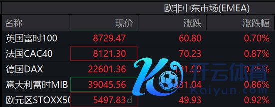 欧股集体上升,欧洲斯托克600指数上升0.7%,盘中波及历史新高,德国DAX30指数涨0.85%,英国富时100指数涨0.7%,法国CAC40指数涨0.87%,欧洲斯托克50指数涨0.92%。